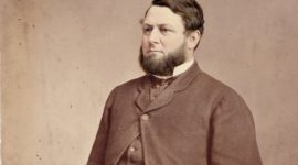 Portrait of Sir Henry Ayers in a brown coat with the top button done up. The image is in sepia brown tones.